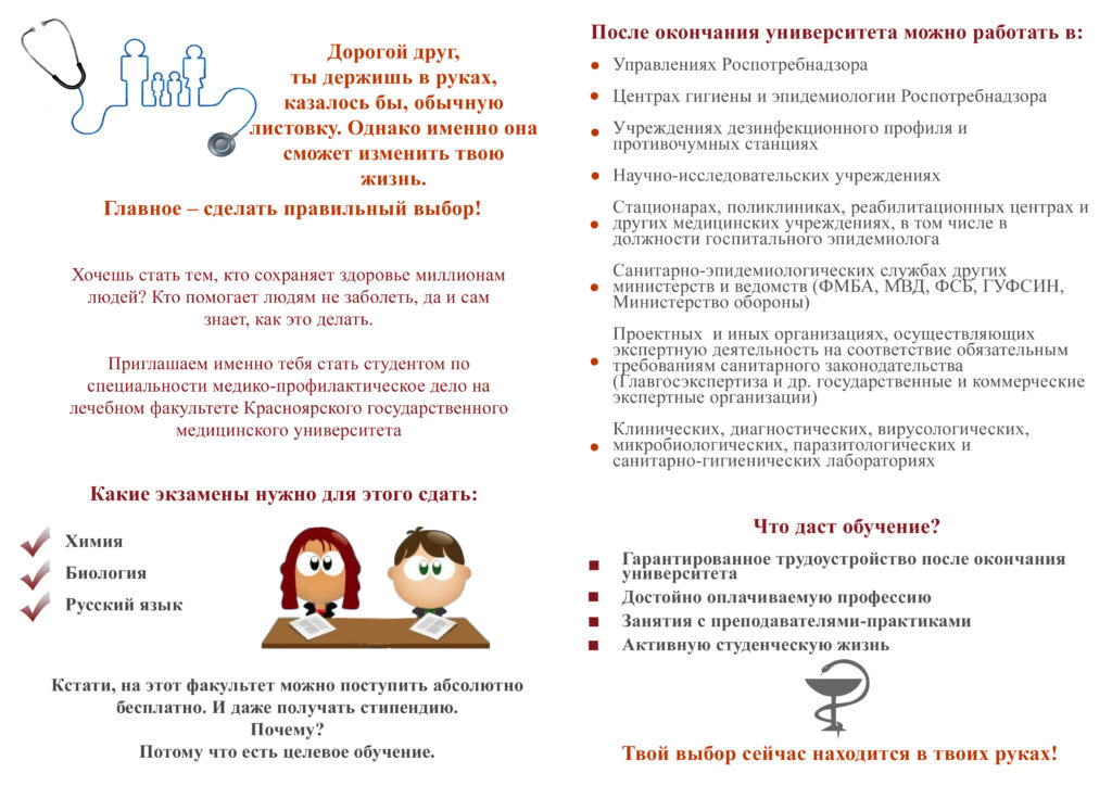 Приглашаем именно тебя стать студентом по специальности медико-профилактическое дело на лечебном факультете Красноярского государственного медицинского университета